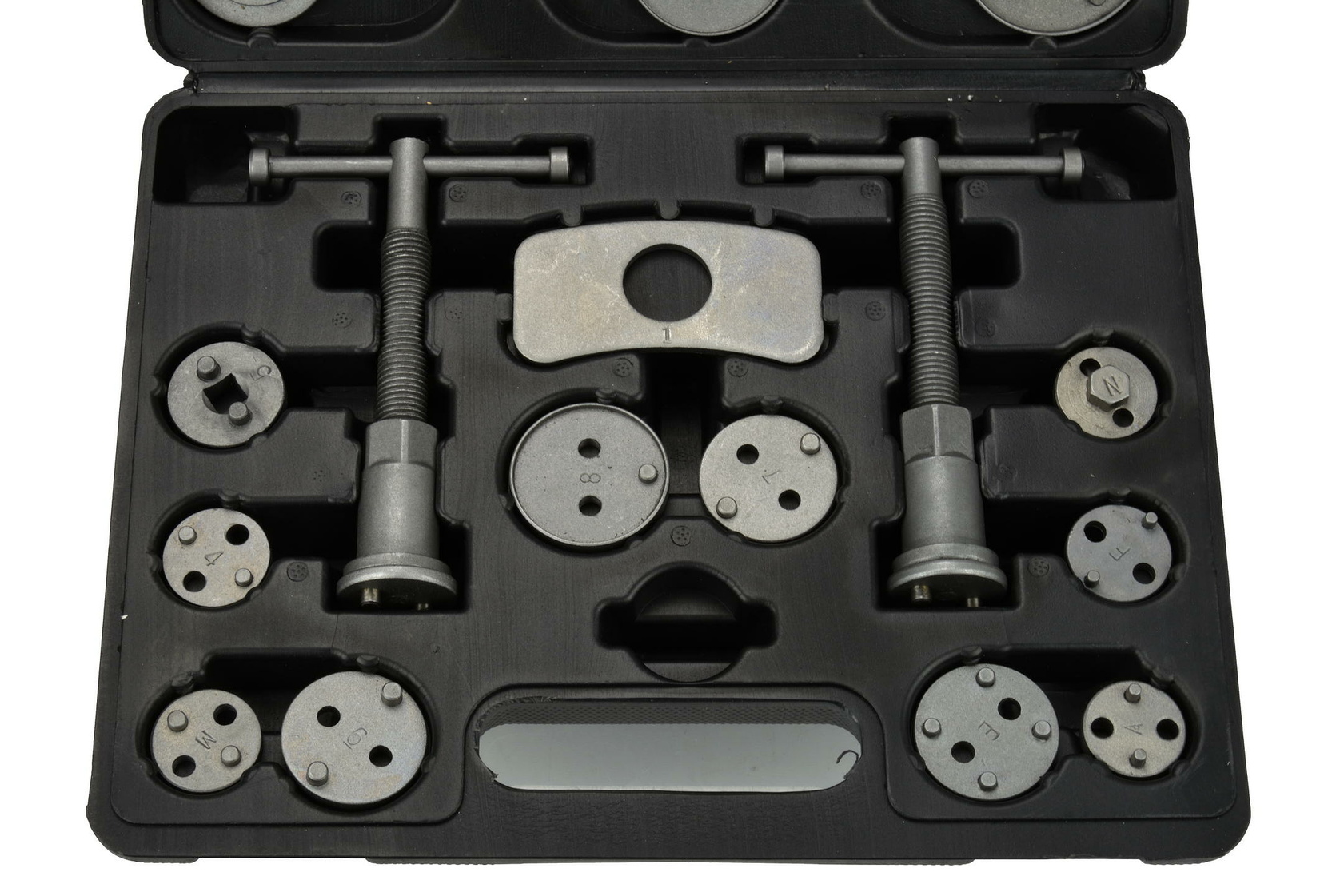 Univerzální sada v plastovém kufříku se používá pro montáž a zpětné vracení pístů třmenu kotoučových brzd.