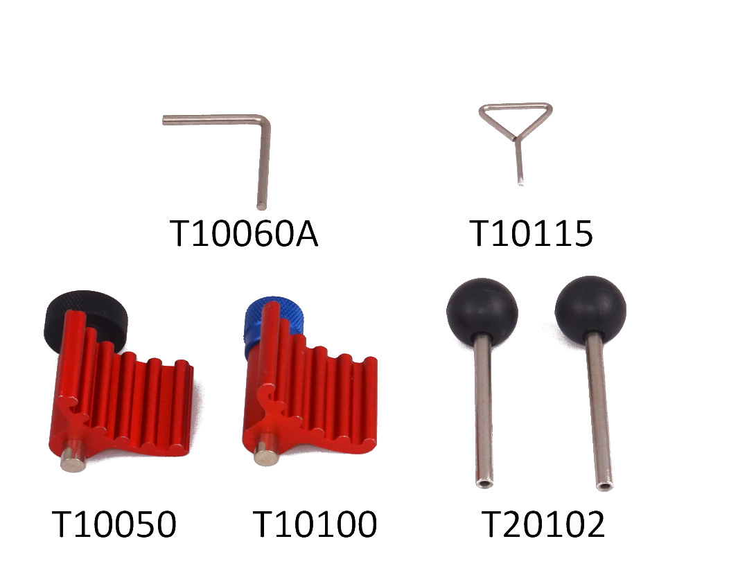 Přípravky na aretaci rozvodů (časování) pro vozy koncernu VAG (1.2/1.4/1.6/1.9/2.0 TDI), sada 6 dílů – QUATROS QS10365.
