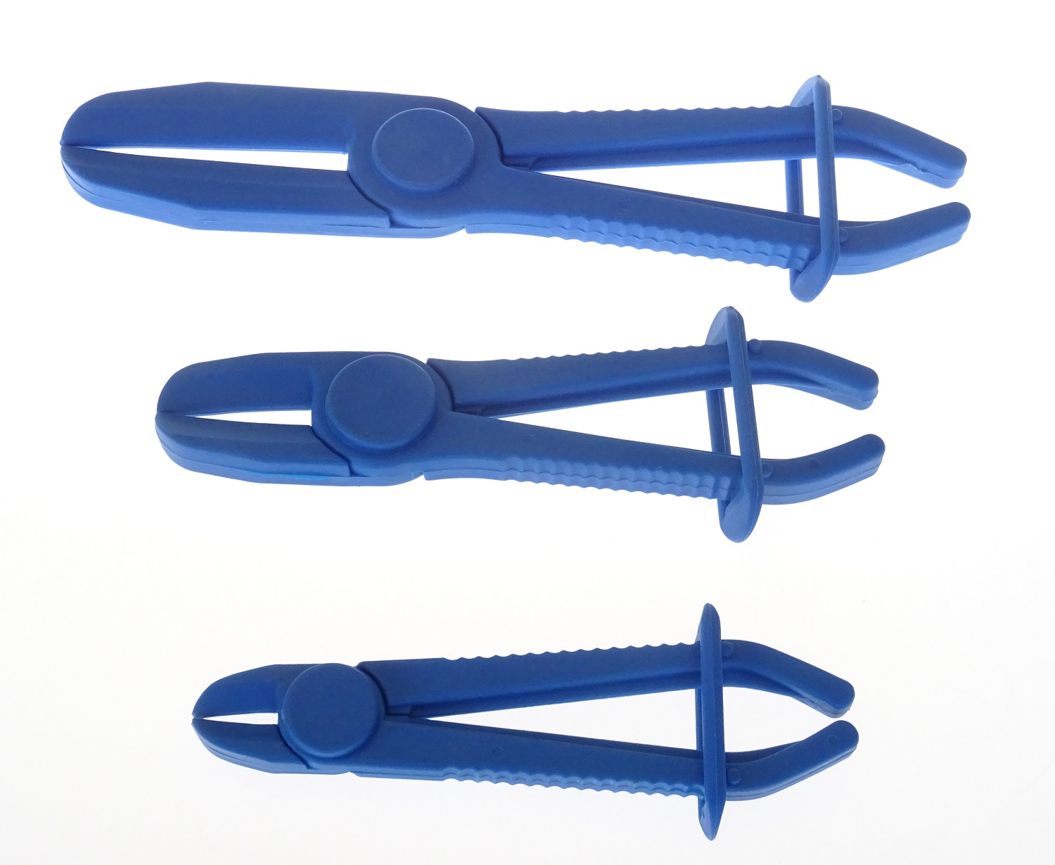 Souprava tří plastových kleští k sevření (zaškrcení) hadic o průměru až 60 mm. Typicky může jít o hadice palivového nebo chladícího systému, které je nutné kvůli servisu odpojit. Uškrcením hadic se zabrání zbytečnému úniku kapalin.