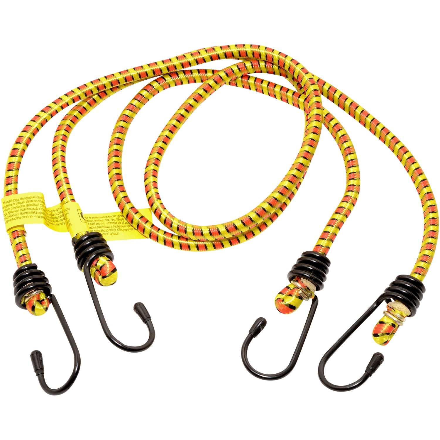 Pružný upínač vhodný např. k upevnění bagáže či obdobných předmětů. Upínač je zakončen kovovými háky, balení obsahuje 2 kusy upínačů. Homologace TÜV / GS.