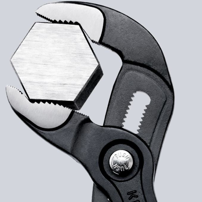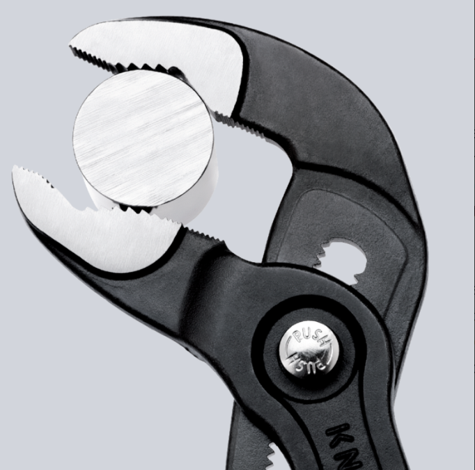 Profesionální instalatérské kleště – „sikovky“ na vodovodní a jiné potrubí s jednoduše nastavitelnou polohou pomocí tlačítka.