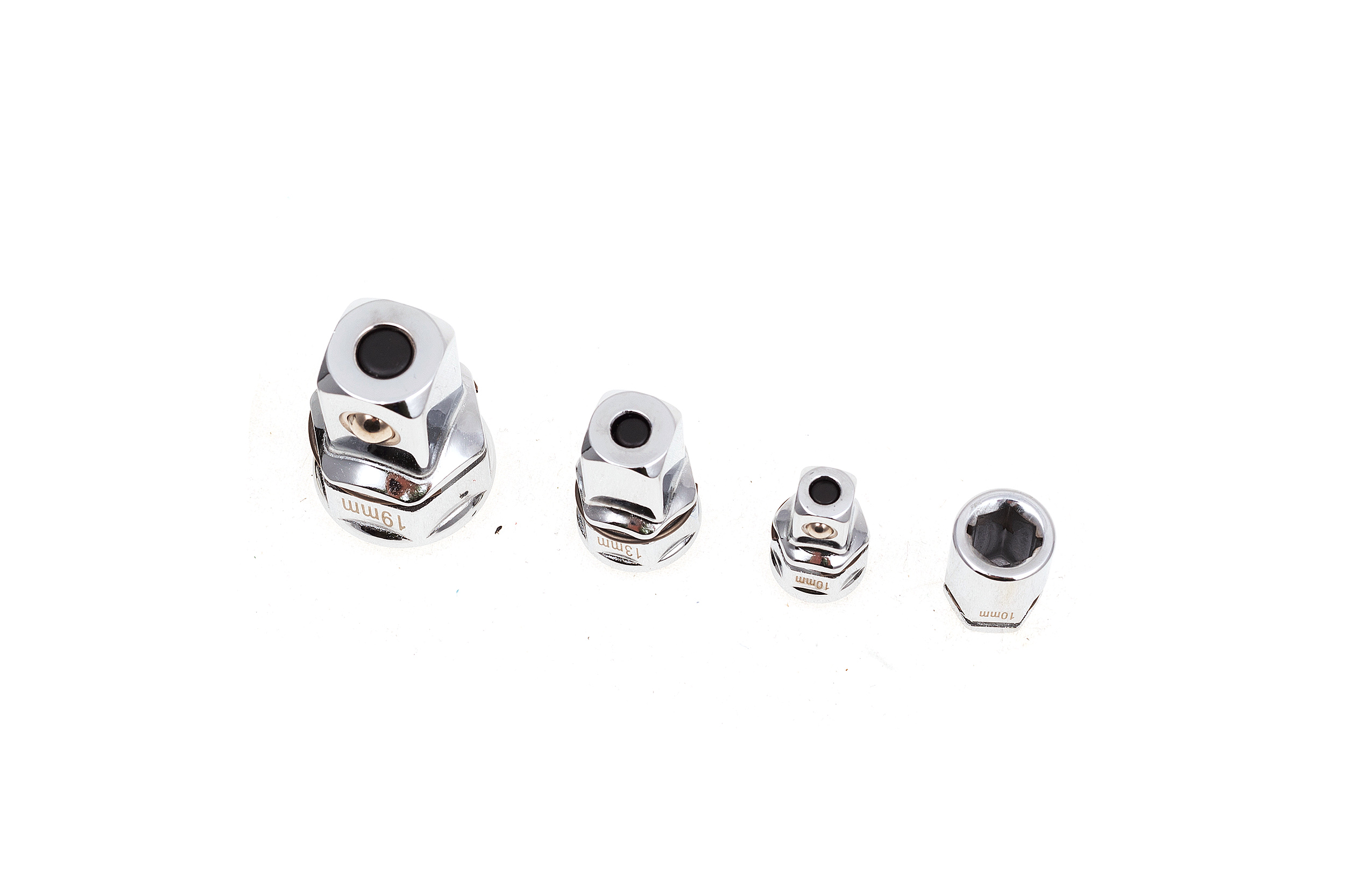 Souprava 4 kusů obsahuje:- adaptér 1/4“ pro nasazení na klíč 10 mm- adaptér 3/8“ pro nasazení na klíč 13 mm- adaptér 1/2“ pro nasazení na klíč 19 mm- držák na šestihranné bity (1/4“), pro nasazení na klíč 10 mm