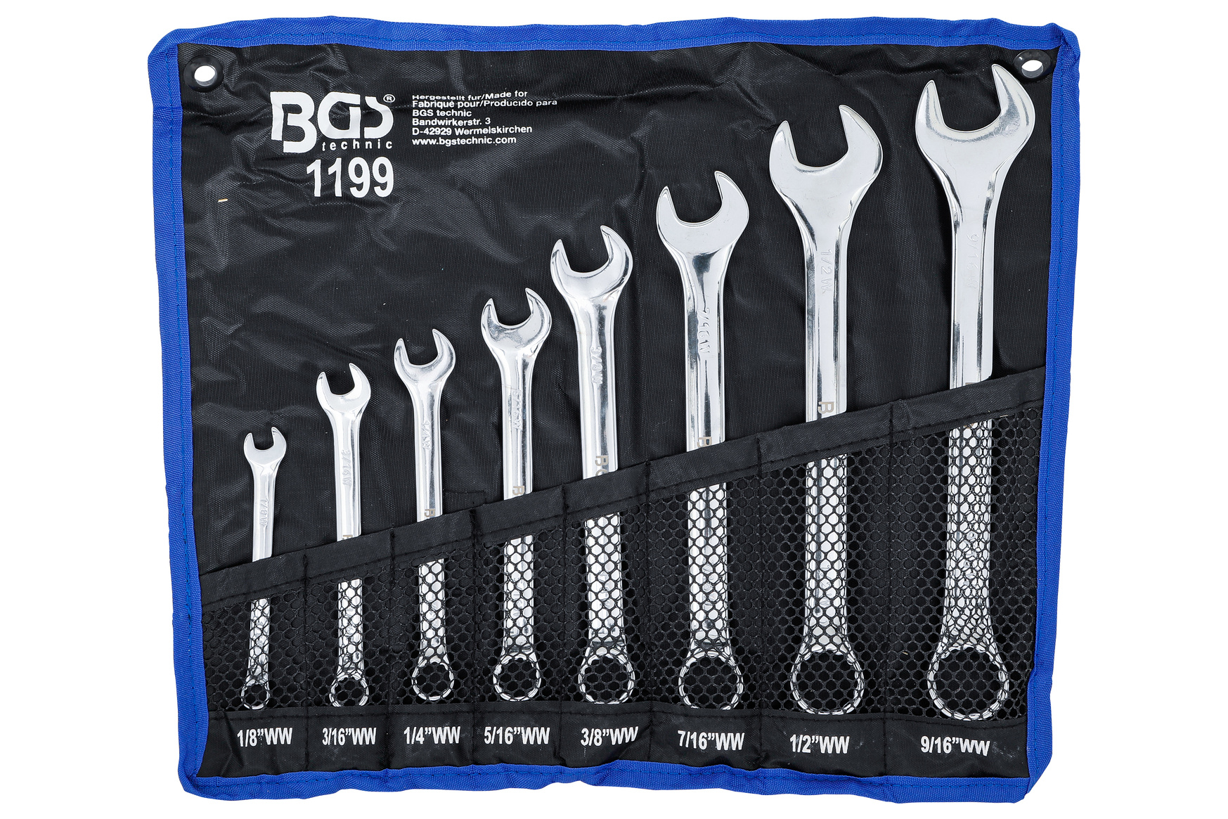 BGS technic Očkoploché palcové klíče Whitworth, velikosti 1/8” až 9/16”, sada 8 ks – BGS 1199