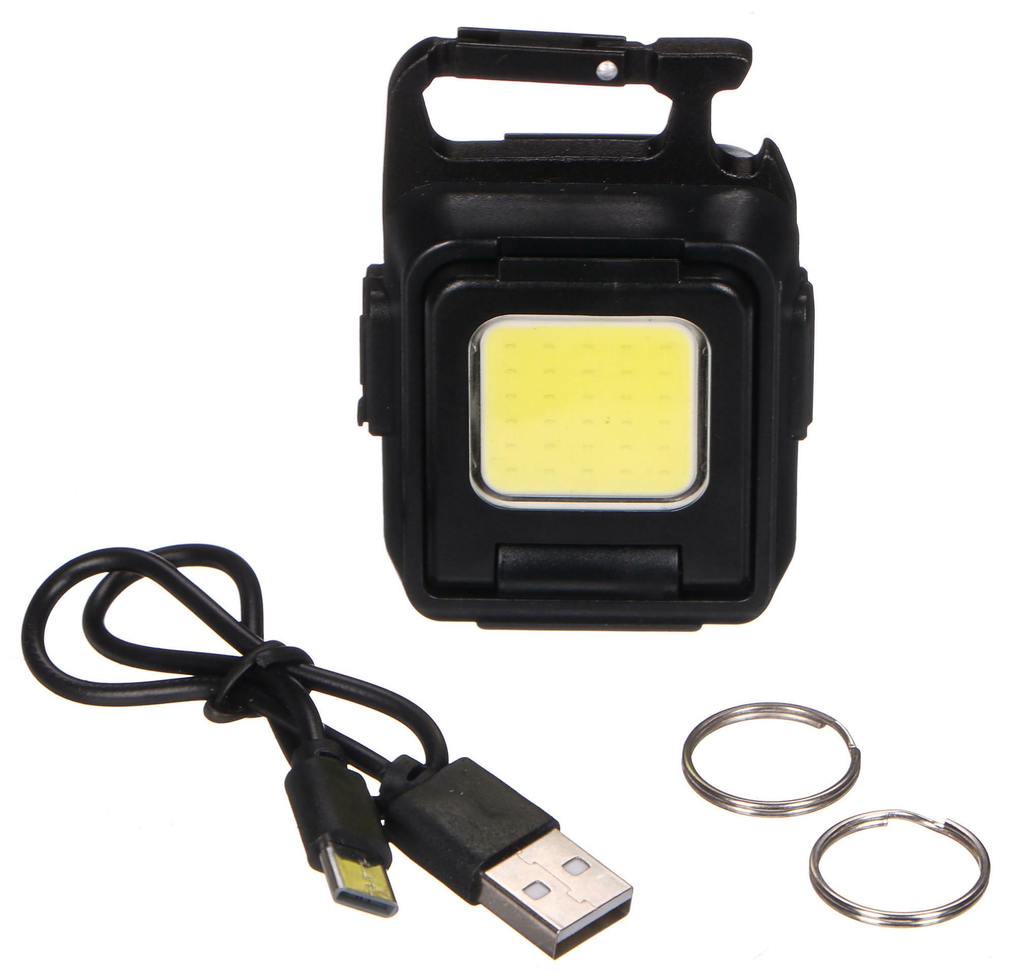 Hlavní výhody:• Svítivost 900 lm• COB LED• Karabina na klíče• Možnost použít jako závěsné svítidlo• Upevnění na stativ• Nabíjení přes USB• Otvírák lahví